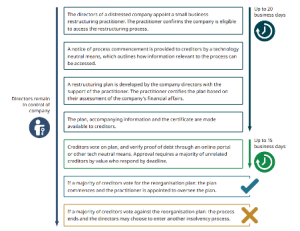- implementing 20 business day period for the development of a restructuring plan by a small business restructuring practitioner. Creditors will then have 15 businesses days to vote on the plan (more than 50% must endorse the plan for it to proceed)